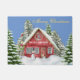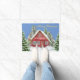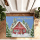 メリークリスマスレッドカントリーハウス雪 ドアマット