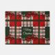 メリークリスマスレッド・グリーン・プレイド ドアマット