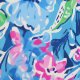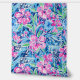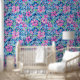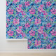 緑の花と背景の青い花と白い音楽のノートと譜面を持つピンクの花を特徴とするシームレスなパターン。デザインは手の外観を持色彩の鮮やかち、フローラ要素とミュージカルモチーフをブレンドして調和のとれた効果を作芸術的成する。