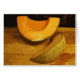 このメッセージカードは2切れの金オレンジメロンのメロンの芸術の写真撮影を特色にします。 それらはあります従って甘美、ジュースは木のまな板で見ることができます。 金ゴールドに対する緑および黄色の皮の質パターンおよび茶色の調子は後ろ木製の壁と作成し、色の興味深く抽象的な構成を形作ります浮上します。 元の写真はデジタル式にこの印象主義、芸術的な静物画のプリントの全面的な気分を強調するために高められました。