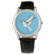 青いクラシックと宗教的な鳩の顔と黒いストラップで示されたメンズのプリント時計。こカスタマイズの時計は買まに見える。