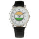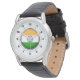 メンズインディアフラッグクラウンブラックレザーストラップウォッチ 腕時計