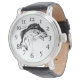メンズウォッチとブラックヴィンテージレザーバンドと魚デザイン