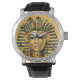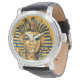 Mens King Tutエジプトのブラックレザーストラップウォッチは、キングタッツミイムマスクの美しい写真を表示