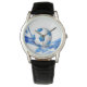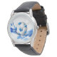 メンズクラシックブラックレザーストラップウォッチは、サッカーボールのグラフィックプリントで示されている。この時計を複数のスタイルから選ぶ。こカスタマイズの時計は買まに見える。