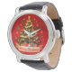 メンズクリスマスヴィンテージブラックレザーストラップウォッチ 腕時計