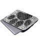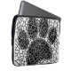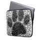 モザイク模様の犬の足は白黒でプリント。カスタムラップトップスリーブ。装飾デザイン。芸術と犬を愛する人のためのギフトアイディア。