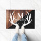 モダンで白いシカの(雄ジカの)枝角の木製の板及び黒 ドアマット