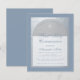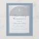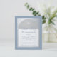 モダンなデザインの初めての聖体拝領招待状。濃い青の長方形の背景に、銀箔を模したアーチがあり、その中に