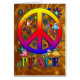 単語の平和は、モダンなレトロ活気に満ち虹の勾配のフェイクな3Dピースサイン、鳥及び青及びラベンダーの蝶カラフルな花柄着色しました。 、Adobe Photoshop CS2を使用して伝統的なアートワークの、次に完了された及び与えられたフェイクな金属質感としてされる。
