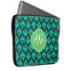 モダンな孔雀の羽パターンモノグラム ラップトップスリーブ