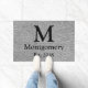 モダンな灰色のヘリンボン及び黒い家族のモノグラム ドアマット