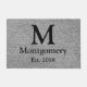 黒いモノグラムの手紙、姓および確立された日付が付いているモダンな灰色のヘリンボン玄関マット。