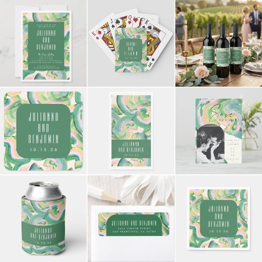 モダンアート抽象芸術緑結婚色 スクエアシール