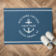 レトロ航海のヴィンテージダスティ読ブルーの「ウェルカムアボード」と、あなたのボートの名前と場所カスタムのdoormat。