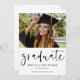 修了招モダン待は、自分のお祝い詳細と一緒に後ろのシニアフォトの4つスタイリッシュと、あなたの写真と書の台本の中で表に「卒業」という言葉を取り上げお気に入りのて、あなたの個人的な写真と一緒にお気に入りの4つ。これはシンプルのミニマルな白黒バージョン。
