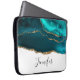 モダンスタイリッシュティール(緑がかった色)アゲート&金ゴールドリボン ラップトップスリーブ