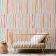 モダン抽象芸術カラフルパターストライプのン壁紙は、白い背景にストライプの抽象芸術パターンをピンク、イエロー、オレンジ、ブルーで表示する。ホームデッキ、バスルーム、壁のアクセントとトリートメント、オフィスの装飾とパーティーの装飾に最適。Evco Studio www.zazzle.com/store/evcostudioによって作成