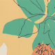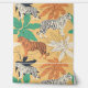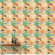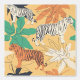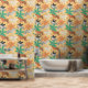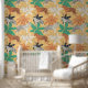 オレンジと白のトラ、トロピカルクリームフローラル、緑とテラコッタヤシの葉のイラストを使用した現代のアクセント壁紙。