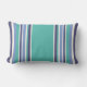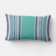 ターコイズ、ネイビーブルー、コーナストライプフラワーブルー、オフホワイトで幅の異なる垂直を備えた屋外の腰枕。パティオやプールサイドに理想的な夏パターン。