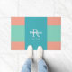 モダンティール(緑がかった色)・ブルー・コーラルピンクファミリーモノグラム ドアマット