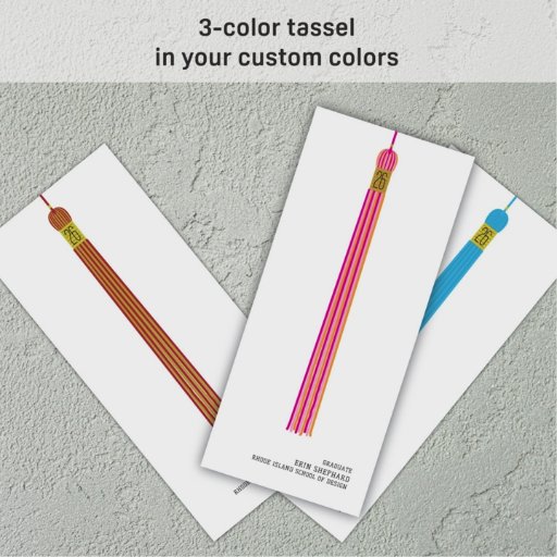 モダンなスラブセリフと極端にコンパクトなサンセリフのアドレスラベルを組み合わせ、カラーバンドが流れるように形成された大胆なタッセルグラフィックを特徴とするモダンデザインの卒業発表や招待状に合わせた、印象的な現代的なデザインを生み出しました。あらゆるカラースキームに合わせて編集可能です。