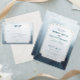 現代的な青い「結婚式のお知らせ」カードで、抽象的でありながら上品な印象を与えます。