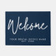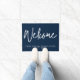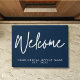 ミニマモダンリスト歓迎ビジネス名とダークブルーと白のパーソナライズされたDoormat。