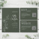 モダンモスグリーンの葉の輪郭結婚写真 招待状