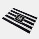 モノグラムのモダンエレガントクラシックイニシャル白黒ストライプの屋外のドアのドア形式。このクリックテンプレートを自分のモノグラムカスタマイズイニシャルで素早く簡単にパーソナライズする。世界中に高速で出荷モダンエレガントモノグラムの白黒の形式。RjFxx © *All rights reserved.#MonogramOutdoorDoormat #BlackAndWhiteOutdoorDoormats #ZazzleMade