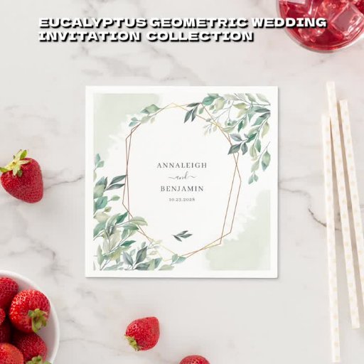 モダンユーカリ緑金ゴールド幾何結婚物 出欠カード