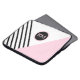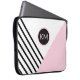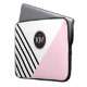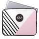 レトロコンテンポラリーなポップ・アートのファッションの幾何学的なパターンは、このラップトップスリーブはモノグラムを囲む顕著な一致する円形フレームとストライプ斜めの黒いとピンク色のブロックを持つ。モノグラムで文字テンプレートをパーソナライズ。他の一致するオフィス製品と技術ギアアクセサリーは、このスタイリッシュデザインで利用可能。