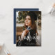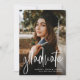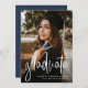 高校祝または大学の卒業生は、この縦型の1写真の発表で卒業パーティーの招待文字のための背面のスペースも含む。白いモダン顔の「大学院」はトレンディーの卒業生に最適だ。バックは紺色で繊細な模様だが、色は学校の色に変えクリックる事がカスタマイズ出来る。