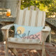 夏モダン色ピンクと青いサンシャイリラックスンバの屋外用の枕