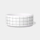 モダンで幾何学的なグリッドパターンのペットボウル。青と白のカラーウェイ。完全カスタマイズ可能で、素敵なギフトやペットのアクセサリーに最適。マッチングアクセサリーもご用意。