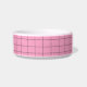 モダンな幾何学模様の単色グリッドパターン ブライトピンク カスタマイズ可能なペットボウル ギフト かわいいアクセサリー。あなたの人生のペットの飼い主への理想的なギフト ペットの名前をモダンチェックパターンでパーソナライズ。