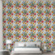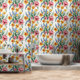 フォークアートのスタイルに黄色の水仙忘れ、ピンクのチューリップとブルーのメヌートはモダン、美しく明るく明るく明るい壁紙を作成し、どの部屋も明るくする。