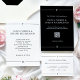 この文はっきりした書を保存する日付カードは、クラシックの白い文字と暗い黒の背景を特徴とする。線モダン縁ど型枠aが上と下に表示され、イニシャルがフレームされる。QRコードの場所もあり、ゲストはより多くの詳細をスキャン結婚し、写真は背面に移動する。