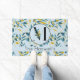モダン葉Navy Blue金ゴールド「Letter M」 ドアマット