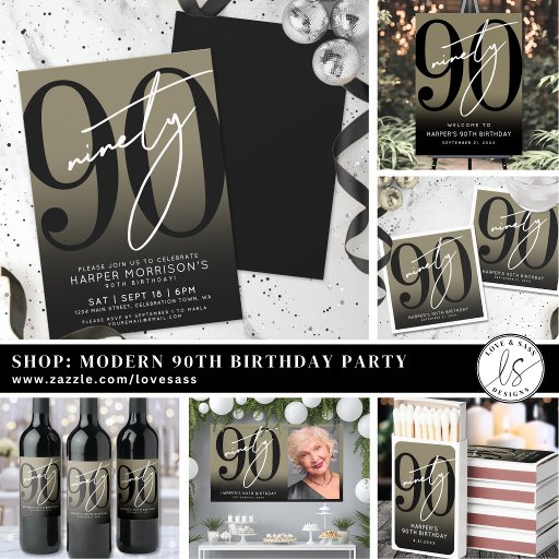 モダン金ゴールド90th誕生日パーティーへの招待 招待状