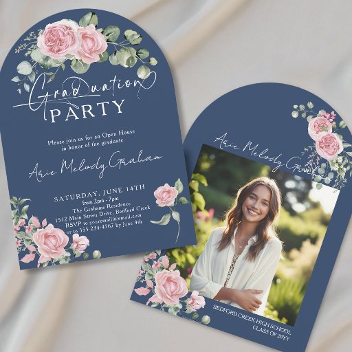 Dusty Navy Blue Graduation - Watercolor Pink Rosesデザイン: Anna Matilda Hellstrom
