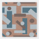 モチャ・ムースとティール(緑がかった色)の幾何学的抽象芸術ミッドセンチュリーモダンアートデザイン。