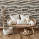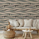 モノクロエレガントウェーブグレーとベージュのペンギン 壁紙