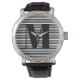 モノグカスタマイズラムイニシャル白黒ストライプ 腕時計