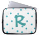 白お洒落で行われたモノグラムのラップトップスリーブ,アクアマリン水玉模様.大文字のアクアマリン1文字のモノグラム、ケースの中央。自分自身のために、または素敵なギフトアイディアとして手紙をパーソナライズ。