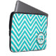 モノグラムのなティール(緑がかった色)の青いシェブロンパターン ラップトップスリーブ
