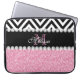モノグラムのなピンクのグリッターの黒シェブロン ラップトップスリーブ