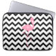 モノグラムのなピンクのフラミンゴ + 黒いシェブロン ラップトップスリーブ