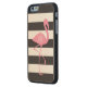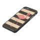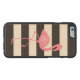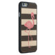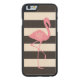 モノグラムのなピンクのフラミンゴ + 黒 + 白のストライプ CarvedウッドiPhoneケース