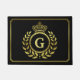 モノグラムのな王室のな王冠の月桂樹のリースの黒の金ゴールド ドアマット